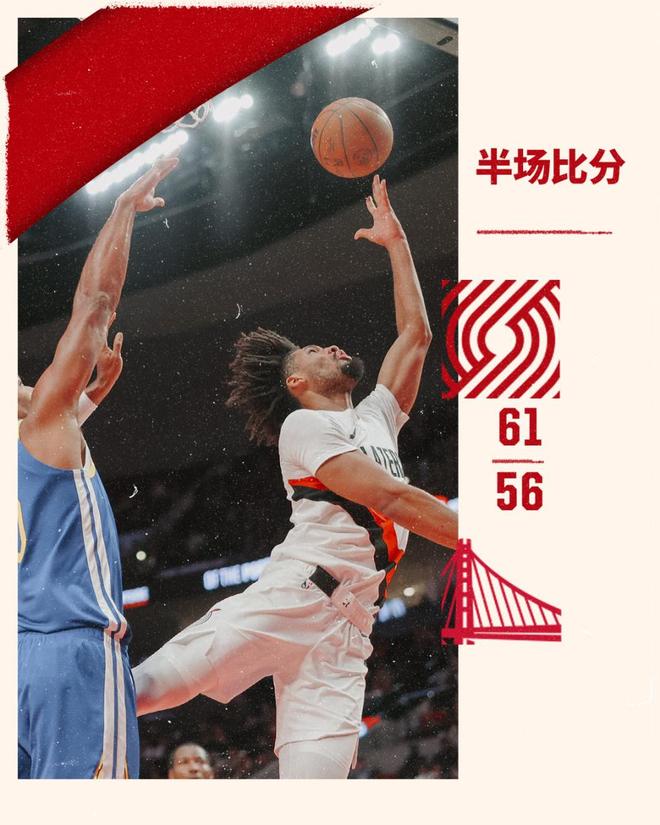 次节比赛,开拓者势头依然火热,格兰特三分命中,建立起13分领先优势。勇士进攻依然低迷,夏普打成2+1,分差拉开到18分,库明加突破打成2+1止血,希尔德三分命中,勇士展开反扑。不过开拓者这边进攻势头还是不错,依然能够占据主动,库里三分命中,波斯特三分也进,分差迫近至个位数。理查德三分也进,库明加反击扣进,勇士一波16-3攻势只落后1分,霍勒迪篮下打进止血,半场打完开拓者61-56领先勇士。
