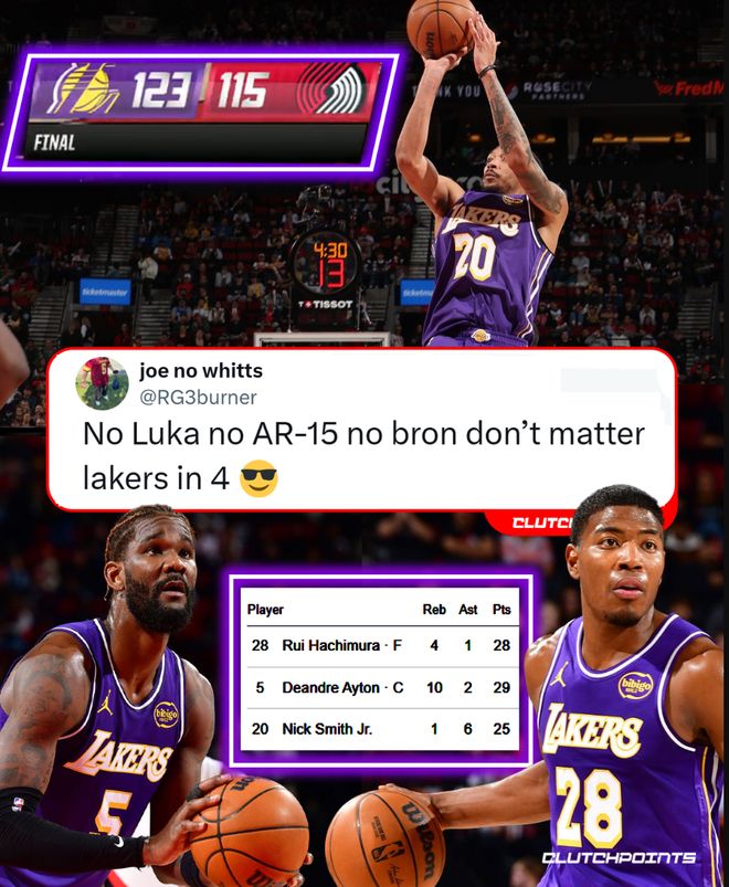湖人123-115开拓者4利好!艾顿制霸内线,2将证明价值,八村太稳